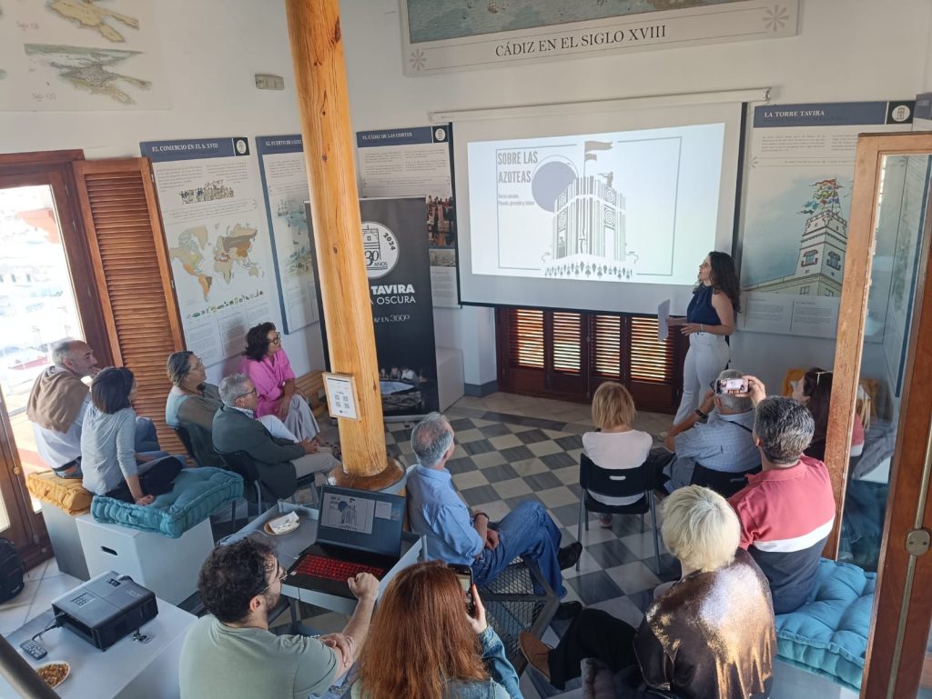 Lucía Seguro, arquitecta gaditana, fue la encargada de impartir la conferencia «Torres Miradores. Pasado, presente y futuro», una charla que trató sobre la historia de este singular elemento arquitectónico de nuestra ciudad, su valor en el paisaje patrimonial gaditano y las claves para evitar su deterioro y olvido. Comprender el por qué de su existencia, su contexto histórico y urbano y su evolución son claves para potenciar su importancia en la ciudad.