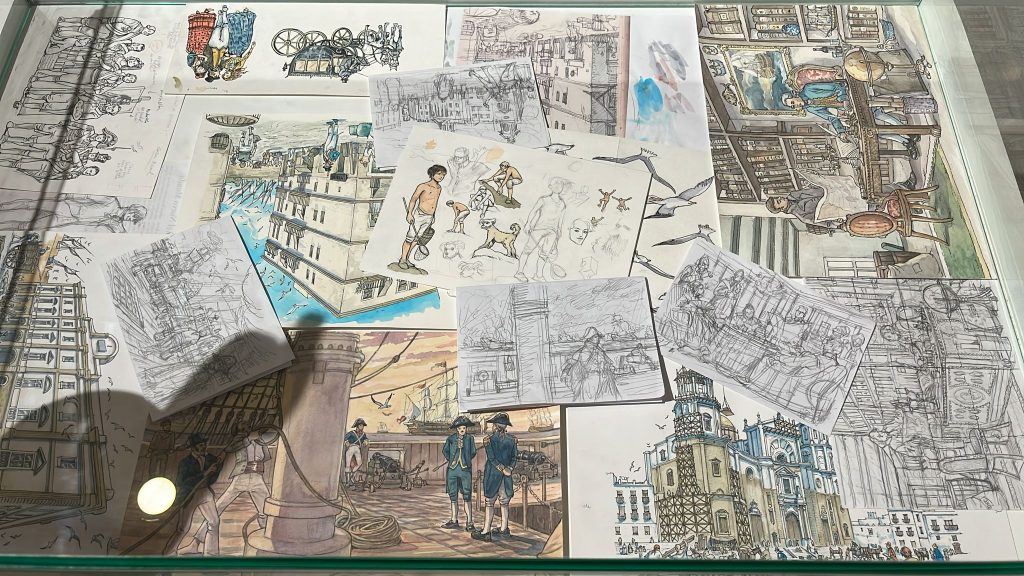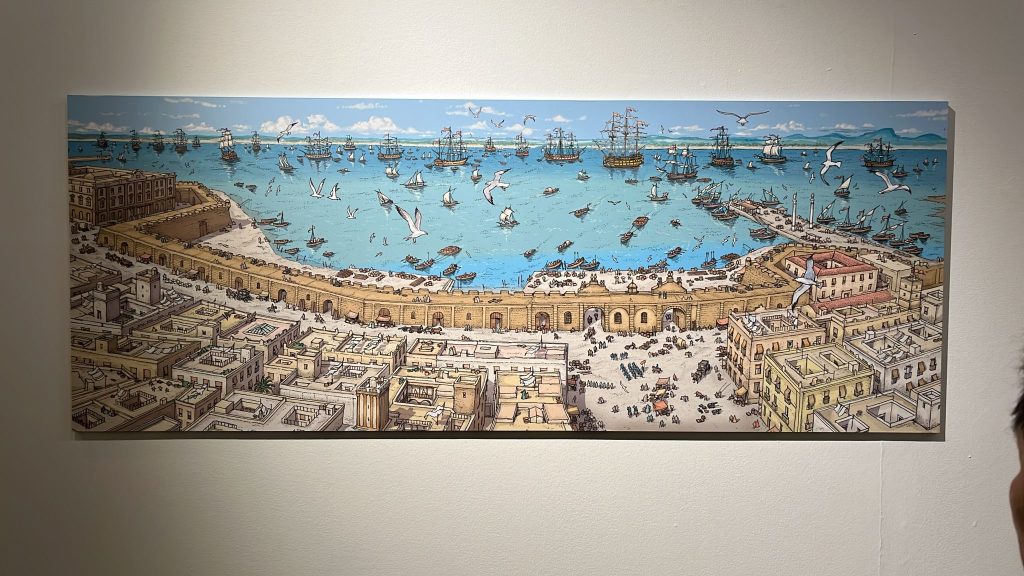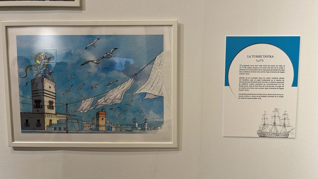 Torre Tavira – Cámara Oscura no pudo perderse la puesta de largo de este nuevo trabajo de Arturo Redondo, con el que hemos tenido la inmensa fortuna de trabajar en numerosas ocasiones, y es que Arturo ha dado vida con sus ilustraciones a algunas de nuestras ediciones, como la Guía de Torres Miradores de Cádiz, los paneles de nuestras salas de exposiciones , el calendario y la colección de postales «Cádiz 1717-2017. Todo pasa por Cádiz», editados con motivo del tricentenario del traslado de la Casa de Contratación de Sevilla a Cádiz o el Calendario 2023 «Cádiz un viaje de 3000 años».