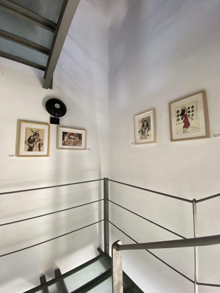 Las ilustraciones, montadas en marcos de 40×30, forman parte del libro «En familia, casi un dietario sobre Cine español», de José Manuel Benítez Ariza. Este libro viene a ser la decantación provisional de una larga conversación intermitente que el pintor Manuel Martín Morgado y el escritor José Manuel Benítez Ariza llevan manteniendo desde hace al menos treinta años, y que queda aquí plasmada en un mano a mano singular, un duelo amistoso para el que cada uno ha escogido el arma que mejor le convenía: las pinturas uno, la escritura el otro, para entretejer así una tupida trama de recuerdos, impresiones, datos, emociones y referencias que ambos comparten, circunscritas en este caso al siglo y cuarto de historia de nuestro cine