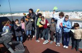 Aquí en la torre, los niños disfrutaron escribiendo y dibujando sus mensajes en cartulinas de colores que, convertidas en aviones de papel, lanzaron desde el mirador.