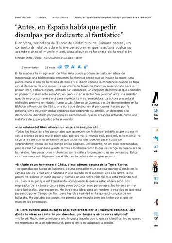 El siguiente enlace lleva al artículo publicado en el Diario de Cádiz, donde la autora concede una entrevista acerca de esta publicación.