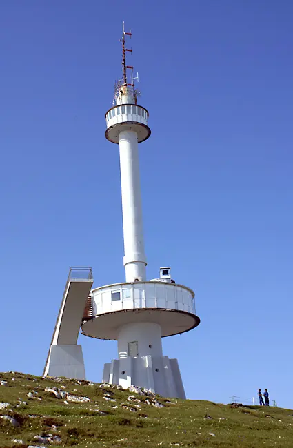 The projected image is in color, very bright, and reflects what is happening outside the tower at that very moment (real, moving images).